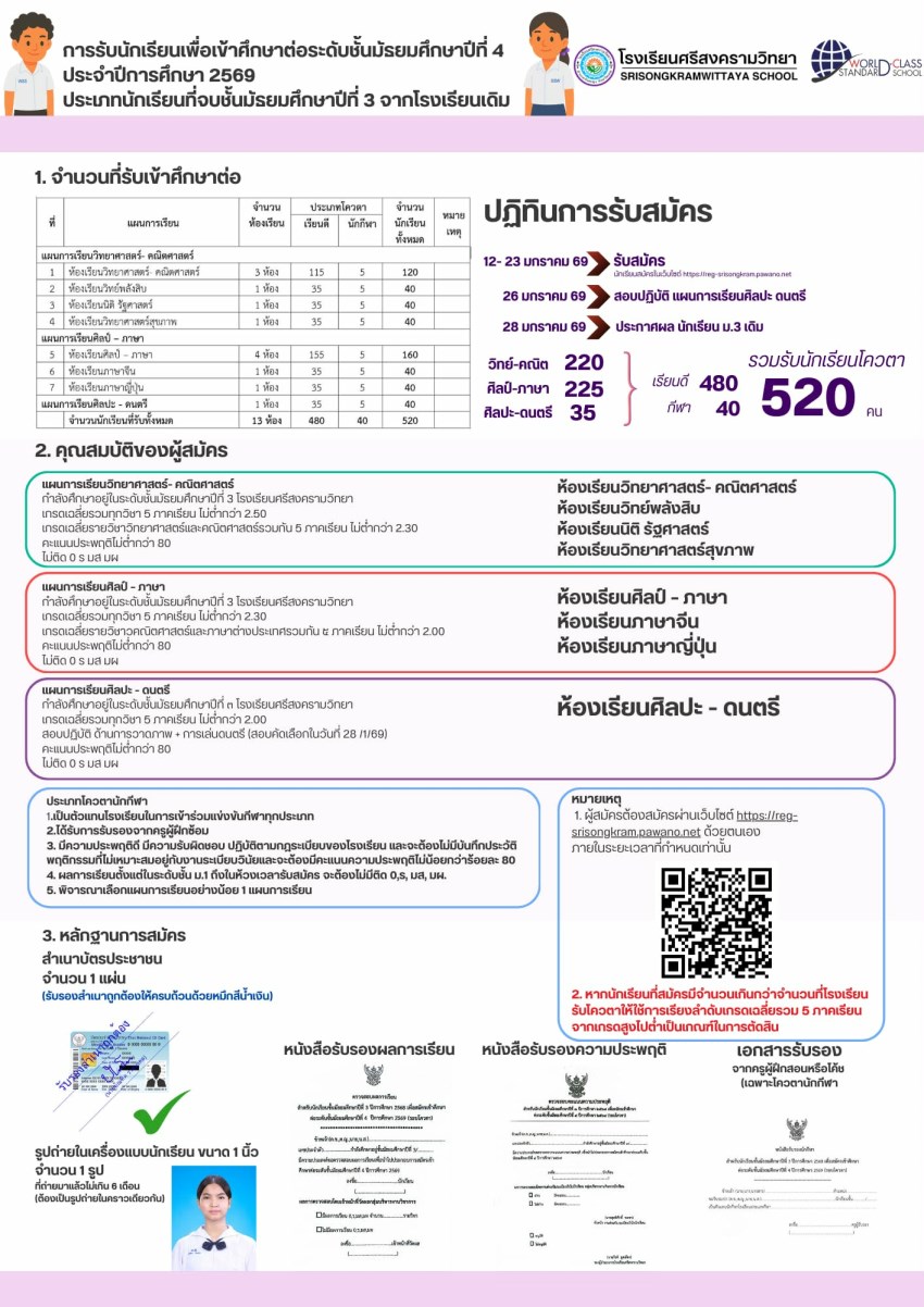 ประกาศโรงเรียนศรีสงครามวิทยา ฉบับที่ 191/2568 เรื่อง การรับนักเรียนเพื่อเข้าศึกษาต่อระดับชั้นมัธยมศึกษาปีที่ 4 ปีการศึกษา 2569 ประเภทนักเรียนที่จบชั้นมัธยมศึกษาปีที่ 3 จากโรงเรียนเดิม