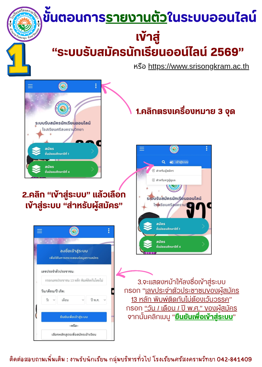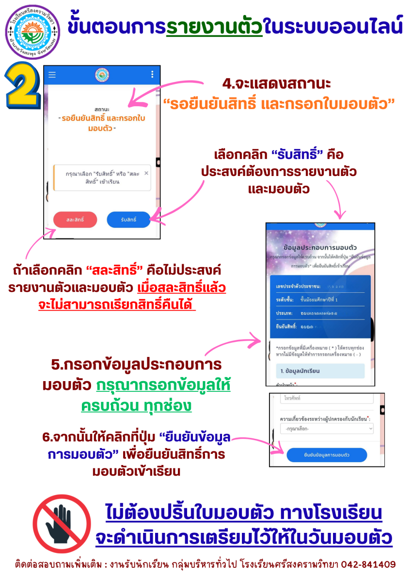 ตามขั้นตอนการรายงานตัวในระบบออนไลน์ 👇👇👇